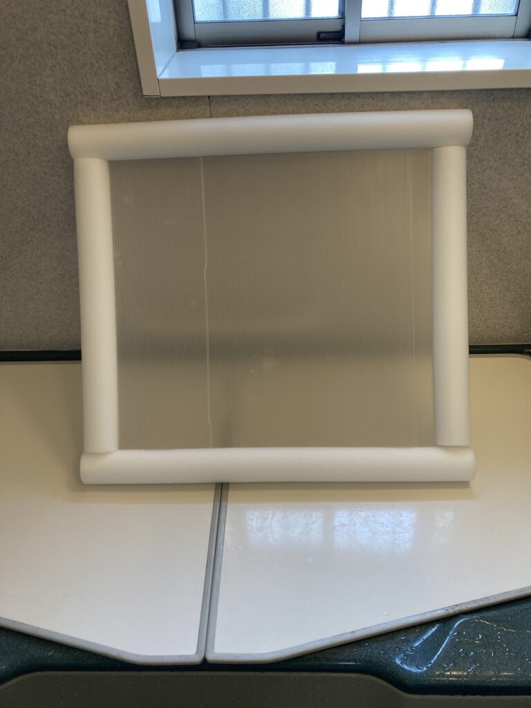 浴室が寒く落ち着いて風呂につかれなかったので、簡易な窓枠を作りました。